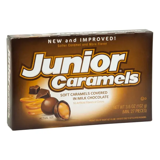Get ready for a chewy, chocolatey treat! Junior Caramels are bite-sized pieces of rich, buttery caramel wrapped in a smooth milk chocolate coating, all packed into a classic theatre box. Perfect for movie nights, sharing (or not!), or sneaking a sweet moment anytime. Each bite delivers that satisfying mix of soft caramel chew and creamy chocolate melt that keeps you reaching for more.