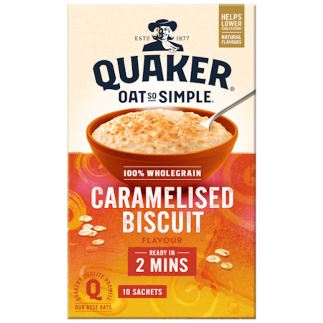 Moreover, each serving contains 33% of the recommended daily intake of oat beta-glucan, aiding in cholesterol reduction. Make Quaker Oat So Simple Caramelised Biscuit Oatmeal a staple in your inventory and delight your customers with this comforting and nutritious breakfast choice.