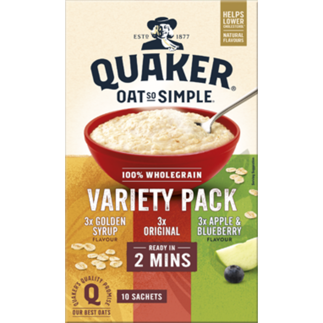 Quaker Oat So Simple Variety offers a mix of different flavoured oat sachets in convenient single portions. The finely cut oats are quick and easy to prepare, providing a warm breakfast with variety, suitable for home use, workplaces and shared environments.
