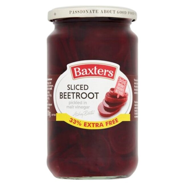 Baxters Sliced Beetroot bestaat uit gelijkmatig gesneden plakjes rode biet met een zachte structuur en een milde, lichtzoete smaak. De plakjes zijn direct klaar voor gebruik en geschikt voor salades, broodjes, koude schotels en als bijgerecht bij diverse maaltijden.